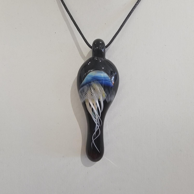Pendentif en verre filé au chalumeau, fait à la main, pièce unique