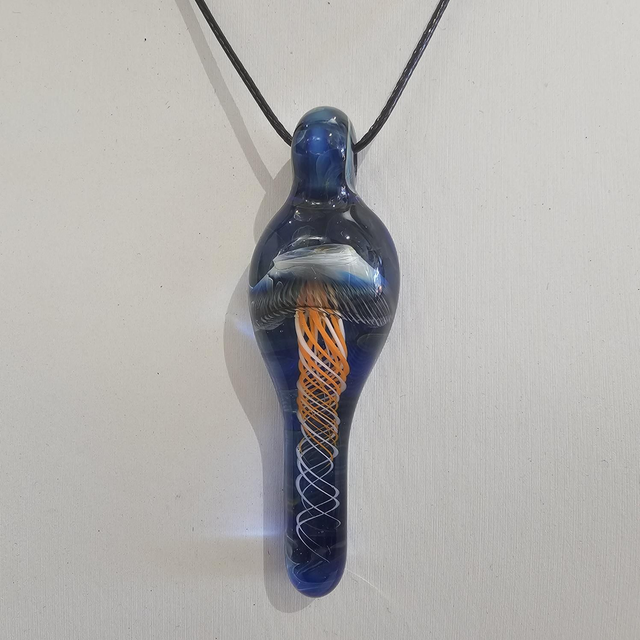 Pendentif en verre filé au chalumeau, fait à la main, pièce unique
