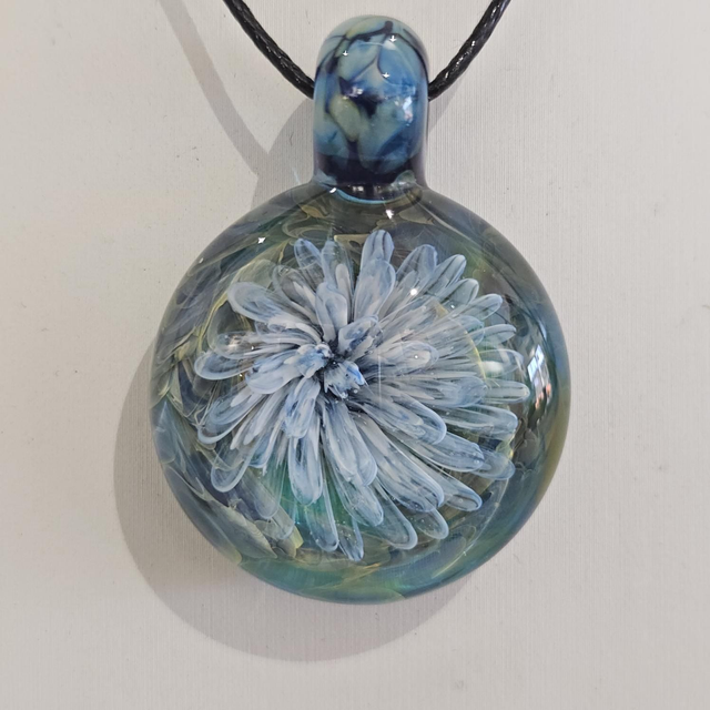 Pendentif en verre filé fait main au chalumeau. Pièce unique.