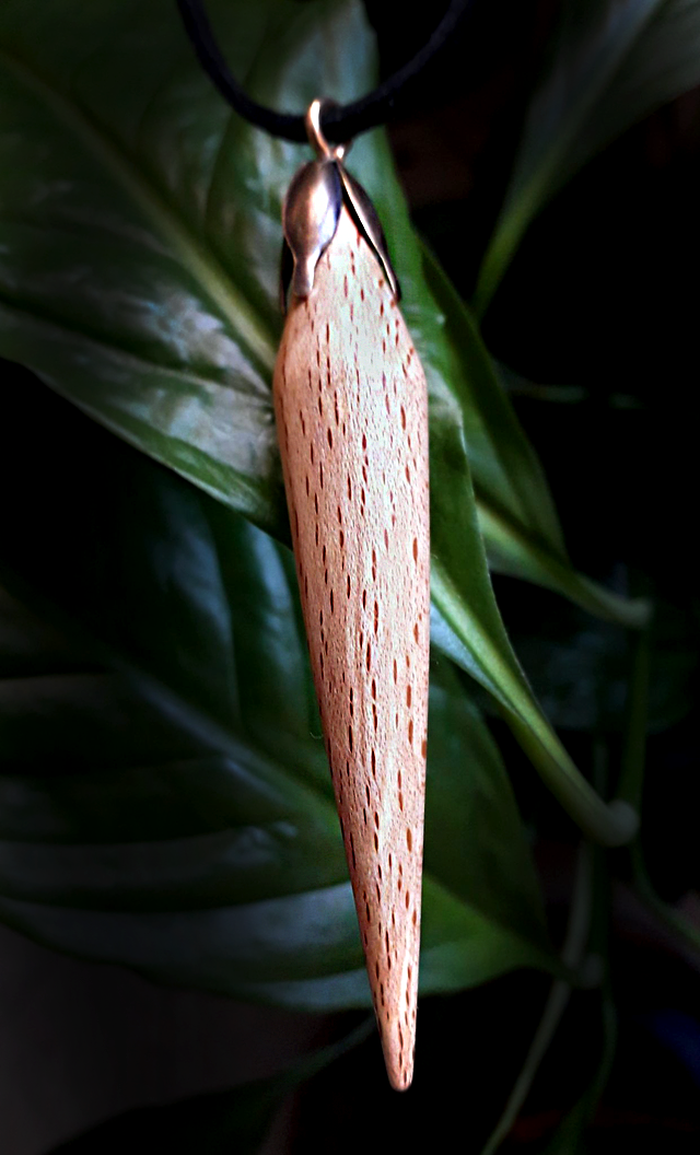 Dans la collection des "Gouttes des Fées", je vous présente "Goutte Magique" en bois de hêtre, coupelle en acier vieilli et cordon cuir noir.