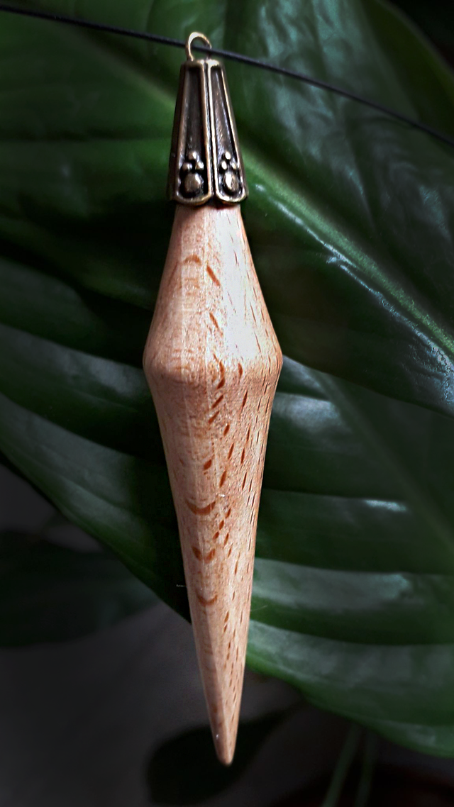 Dans la collection des "Gouttes des Fées", je vous présente "Goutte Royale" en bois de hêtre, coupelle en acier vieilli et cordon acier noir fin.