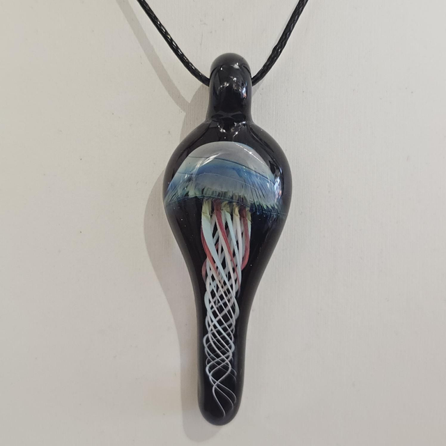 Pendentif en verre filé au chalumeau, fait à la main, pièce unique
