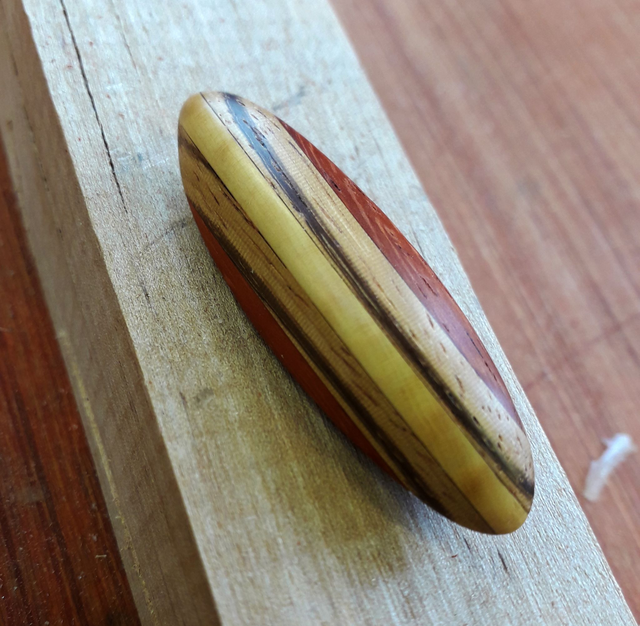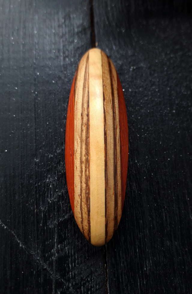 Dans la collection des "Talismans", je vous présente le "Talisman zébré", en bois de padouk, de zébrano et de buis. Le lacet est en satiné marron moredoré.